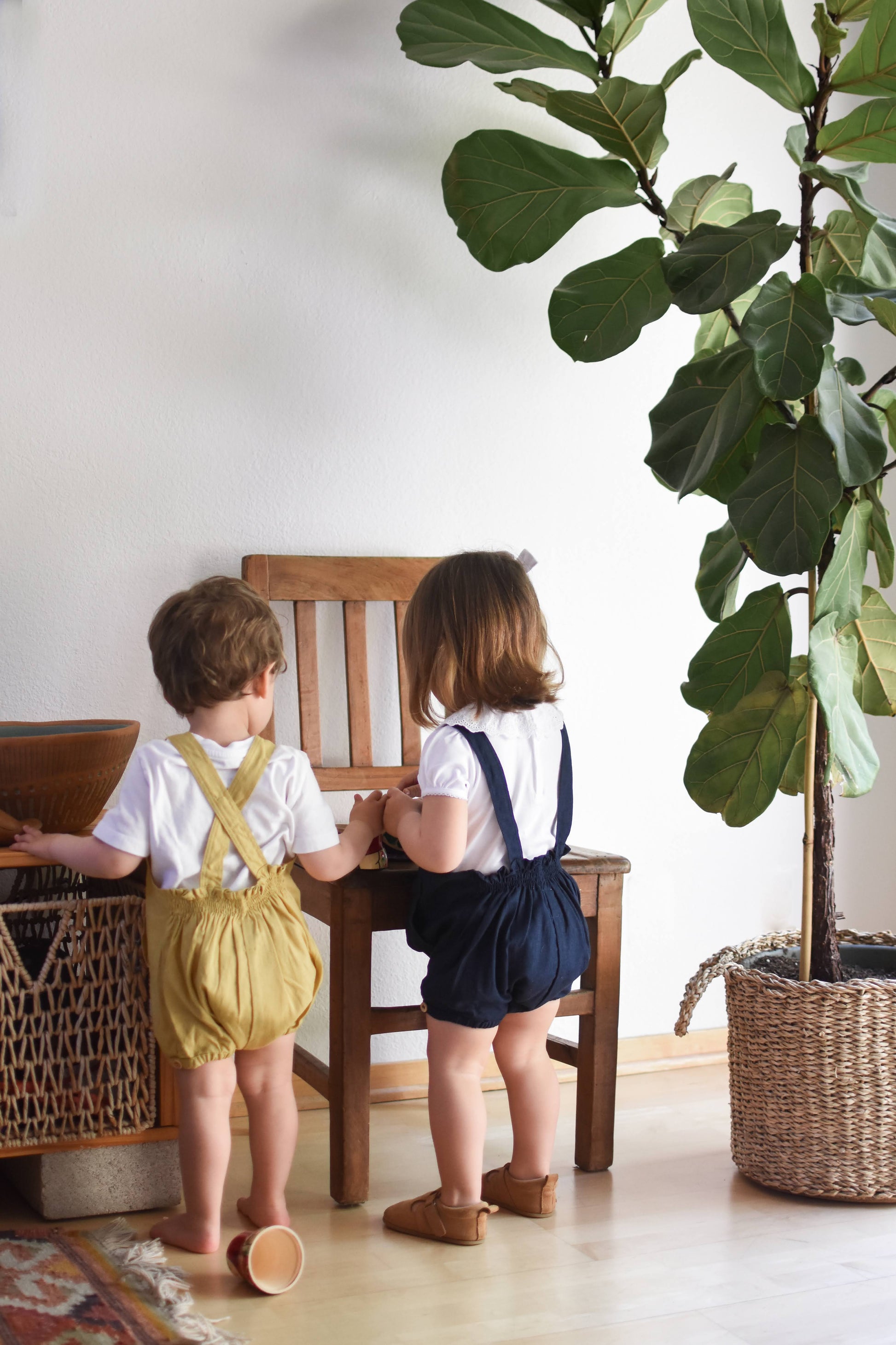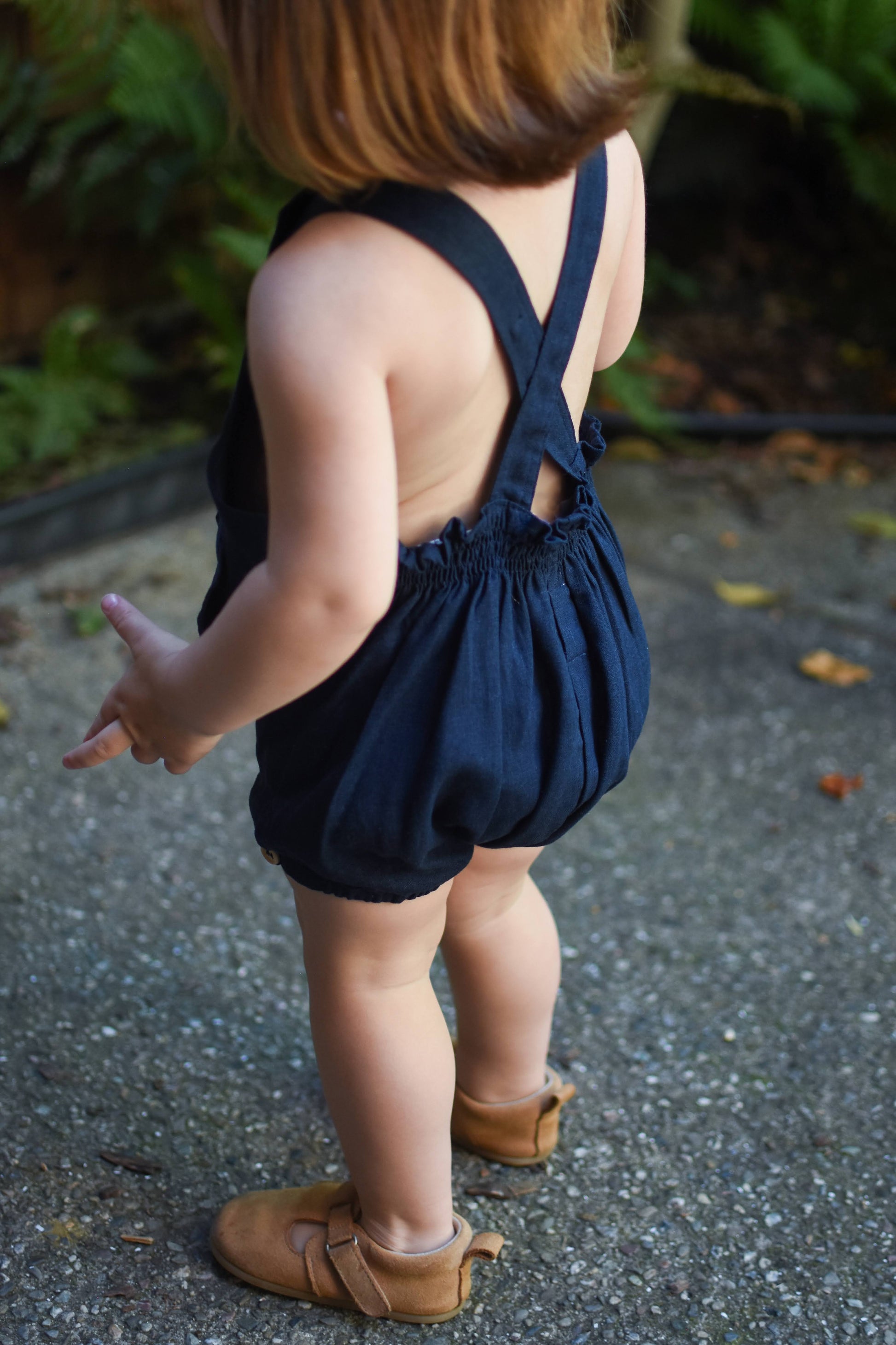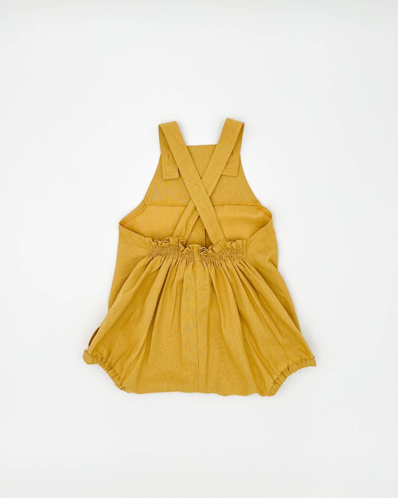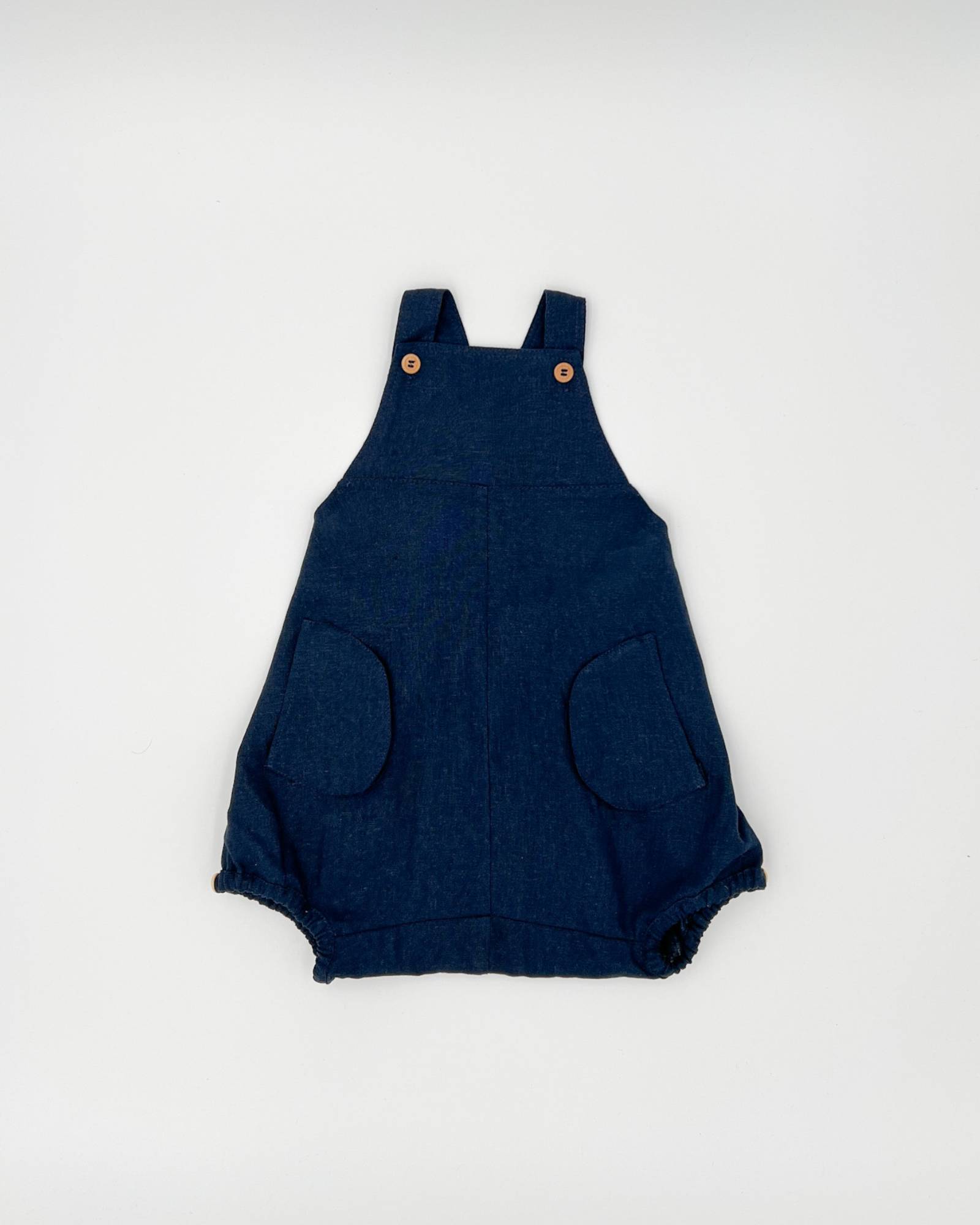 Beautifully crafted unisex romper with a front bib, two convenient front pockets, an elastic back waist and leg openings. Made from high-quality linen and rayon blend, this durable fabric only gets softer and more comfortable with each wash. Versatile enough to be paired with tights in the winter or worn on its own in the summer. Its neutral design makes it perfect for passing down to siblings. Can be easily maintained by machine washing on a delicate cycle and hang drying. Made in Chile.