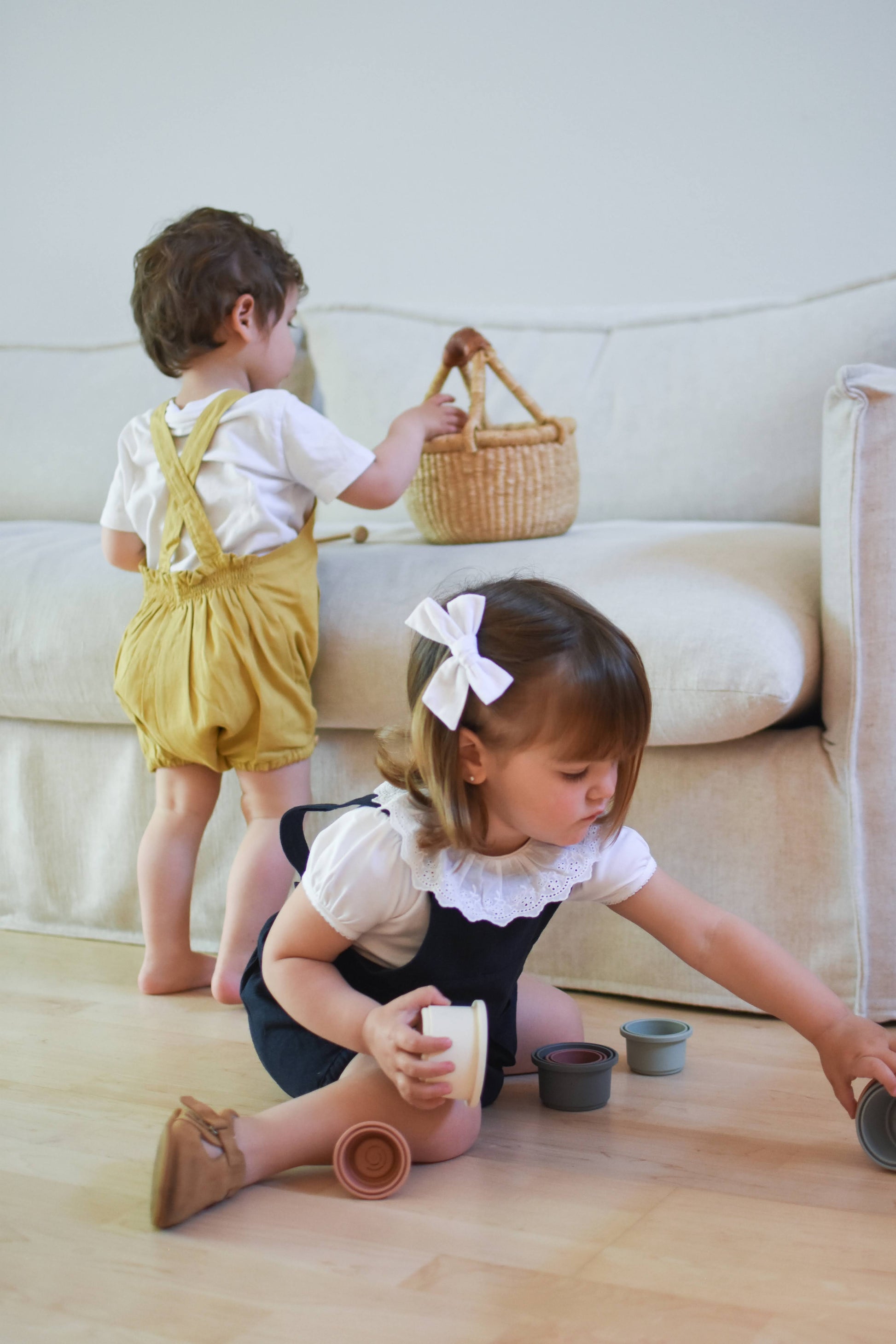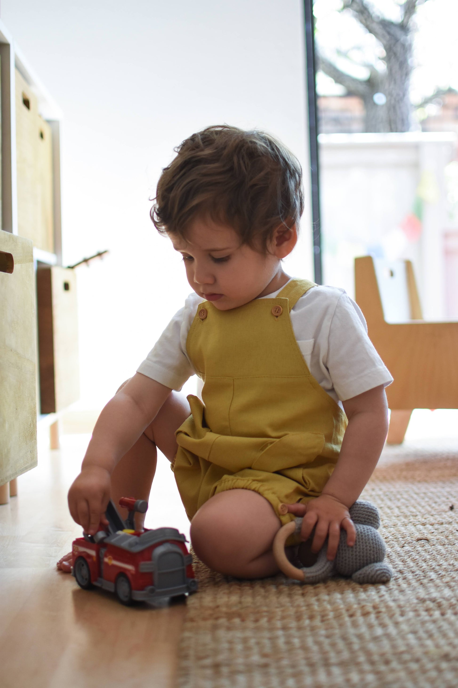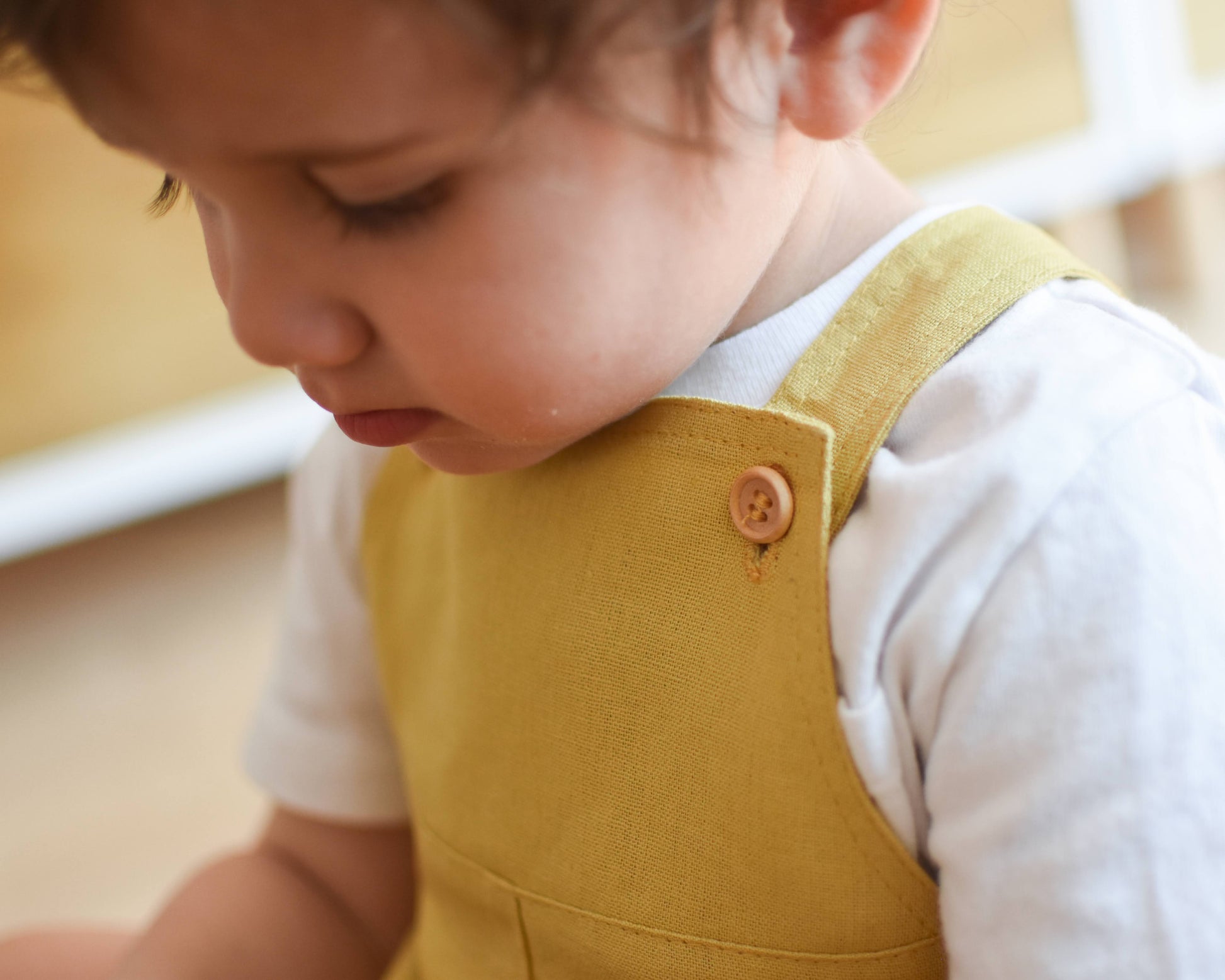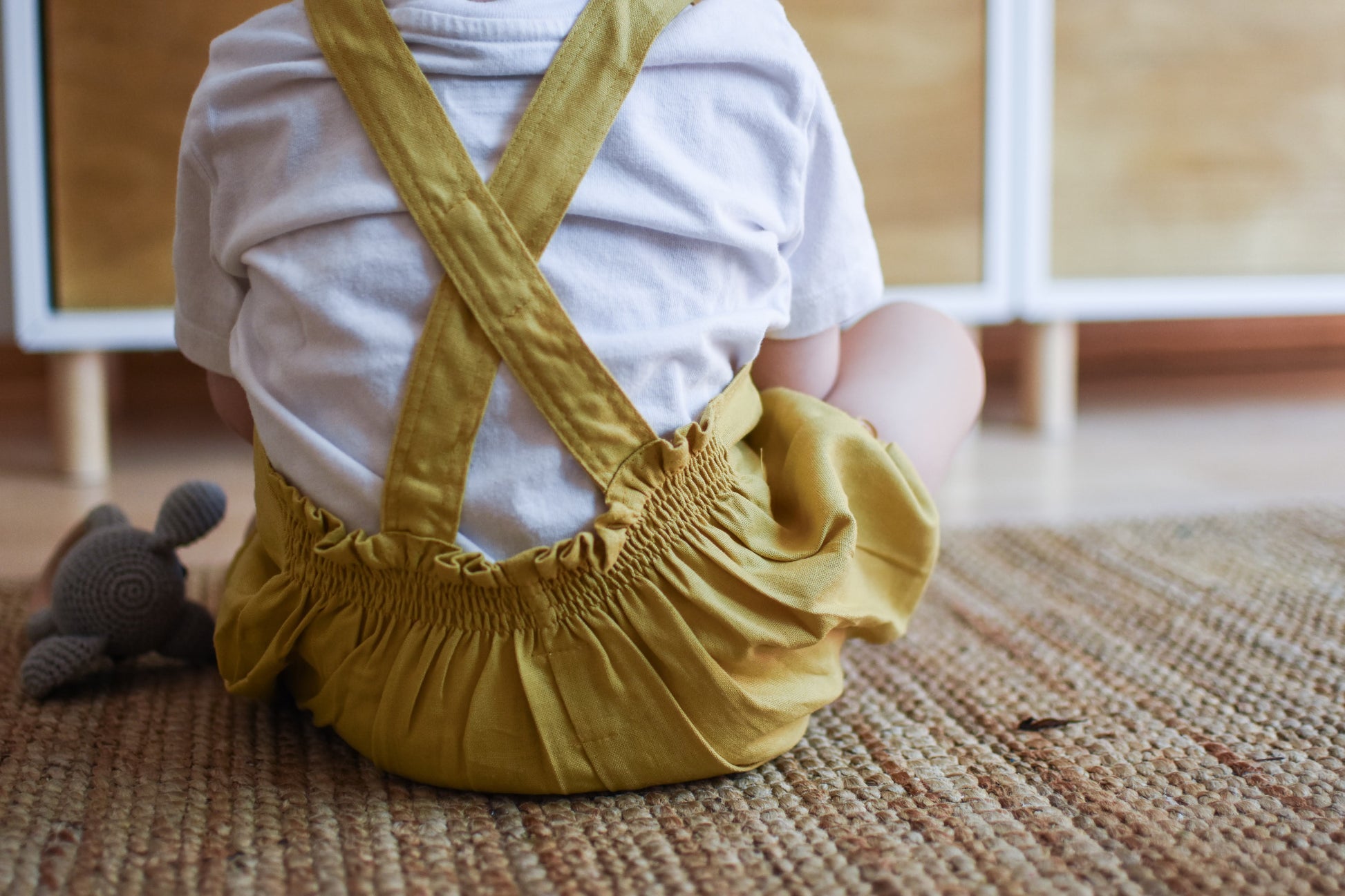 Beautifully crafted unisex romper with a front bib, two convenient front pockets, an elastic back waist and leg openings. Made from high-quality linen and rayon blend, this durable fabric only gets softer and more comfortable with each wash. Versatile enough to be paired with tights in the winter or worn on its own in the summer. Its neutral design makes it perfect for passing down to siblings. Can be easily maintained by machine washing on a delicate cycle and hang drying. Made in Chile.