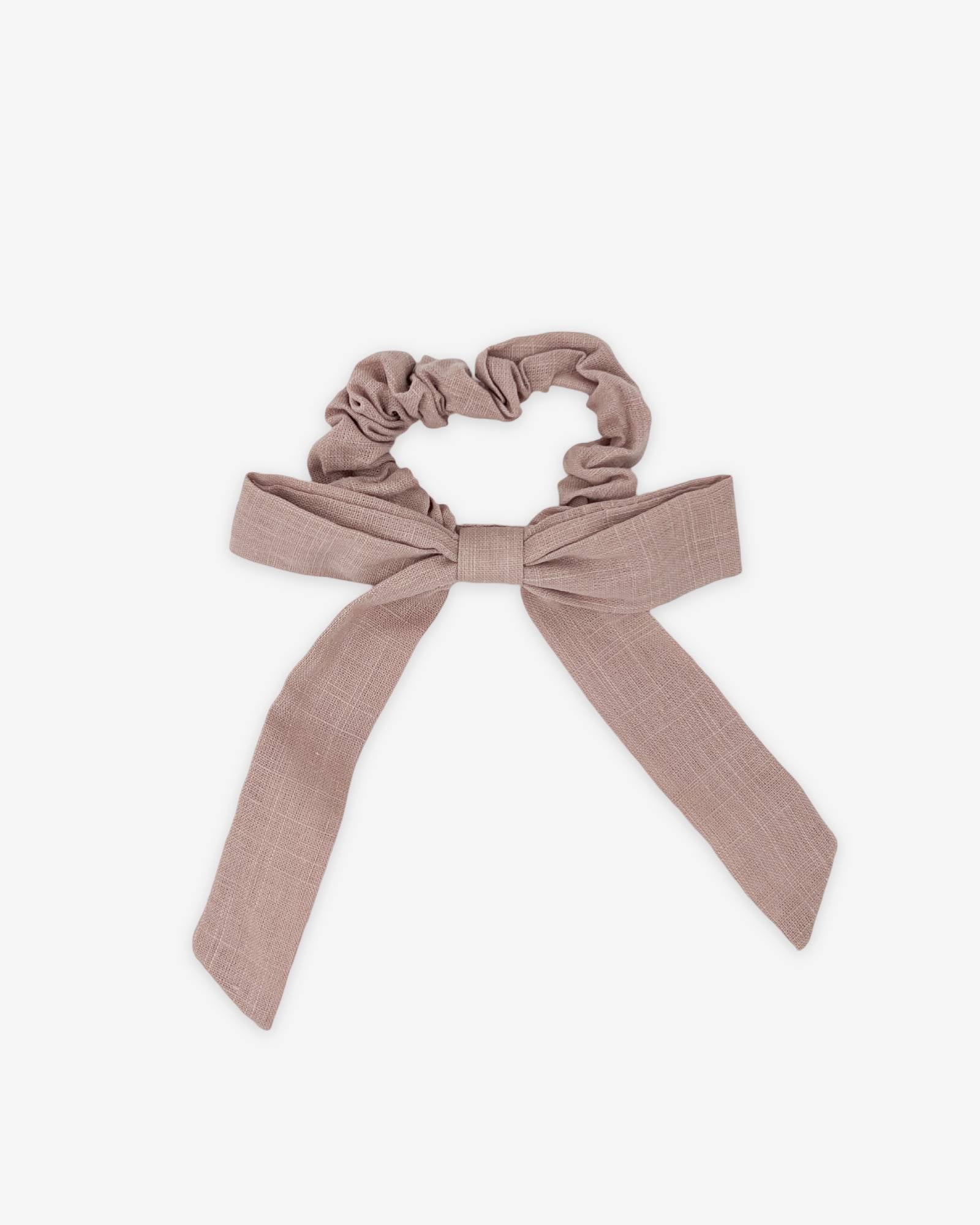 Vintage dusty pink scrunchie with bow made of 100% cotton, perfect for matching with any outfit.